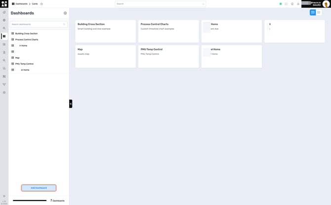 Use this menu to create dashboards within Perspio. By crafting dashboards, you can have a visual representation of your asset ecosystem, providing a comprehensive overview of key metrics and performance indicators. Dashboards offer a dynamic and interactive way to analyse data, allowing you to quickly identify trends, anomalies, and opportunities.