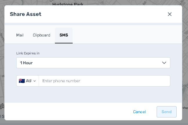 SMS sends the asset link directly by text message from Perspio.