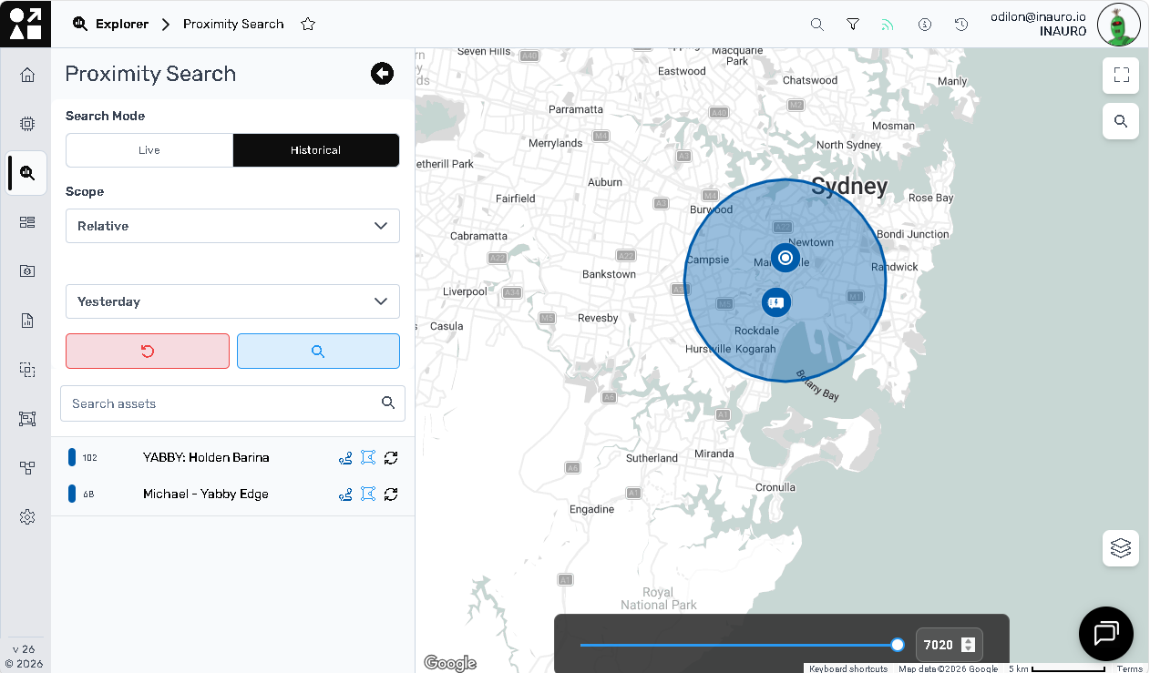 Learn how to use Proximity Search in Perspio Explorer to find assets near a point of interest. This guide explains Live vs Historical searches, POI and radius controls, map tools, running queries, interpreting results, and troubleshooting missing or unexpected matches.