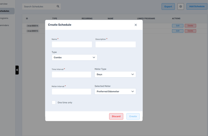 Type | Indicates the schedule type (Time-based, Meter-based, or Combo). |