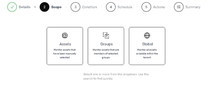 Learn how Workflow Scopes work in Perspio. This guide explains Assets, Groups, and Global scopes, how each behaves, when to use them, and examples to help you apply the right workflow scope for targeted monitoring and notifications.